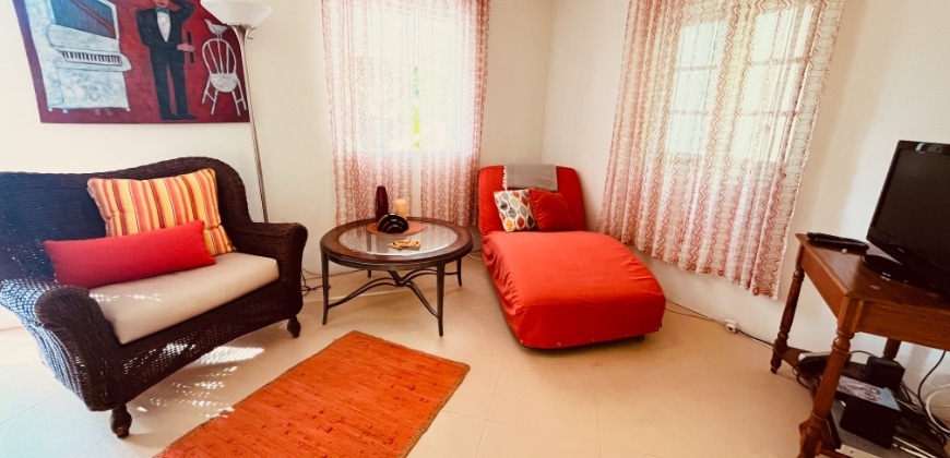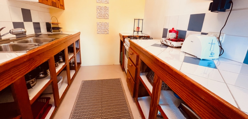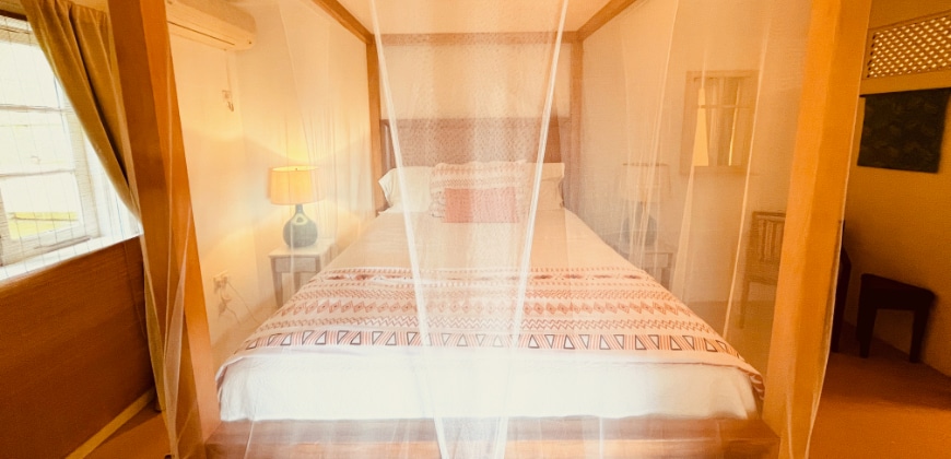 A living room, a fully-equipped kitchen and approximately 880 square feet of vaulted ceiling rooms, all with fans and screened louvered shutters, provide guests with the true feel of the tropics. A gym, a plunge pool(shared between both apartments) a washing machine and a large sunbathing are for guests enjoyment.