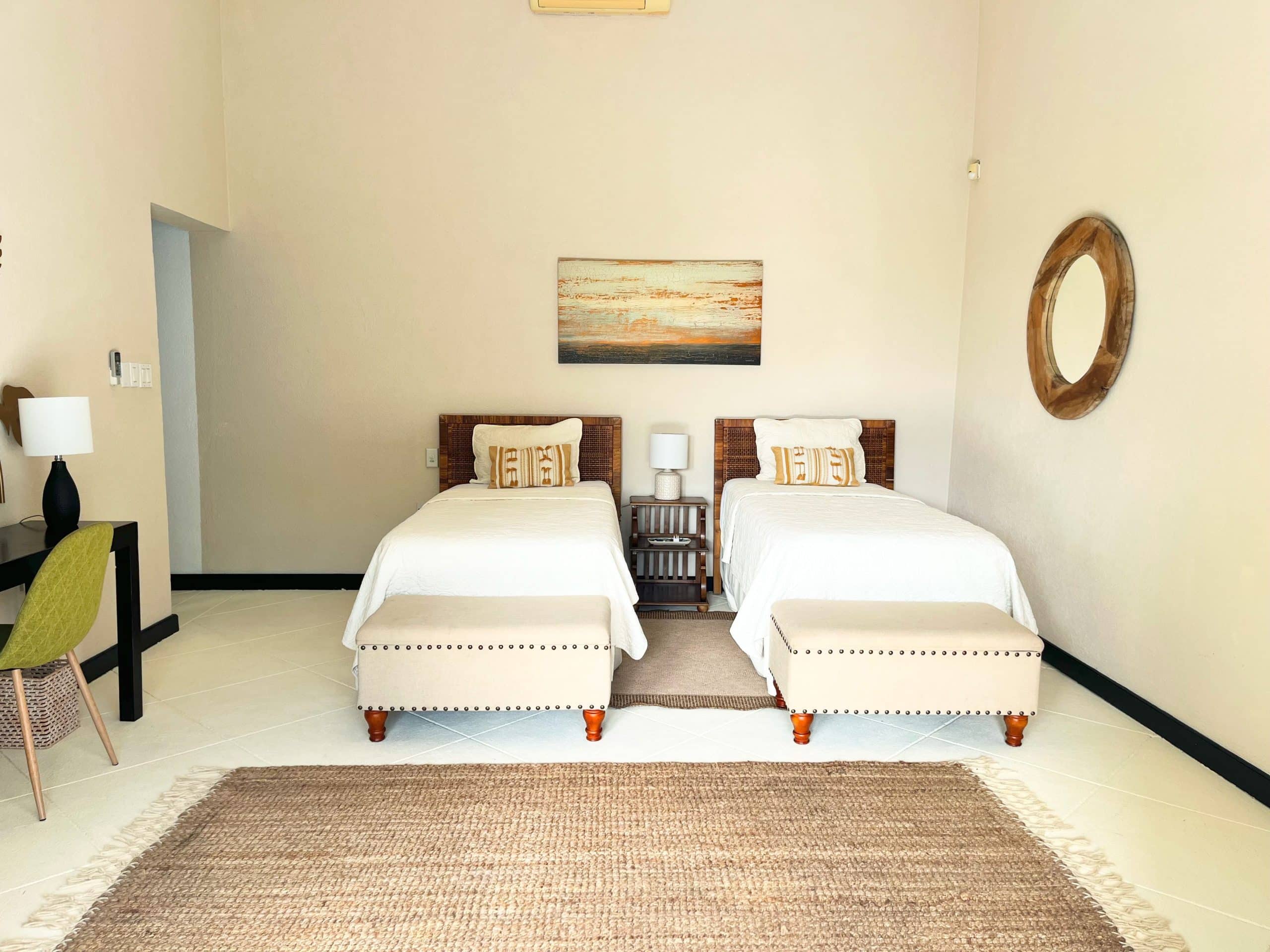 Lower Level: Two additional air-conditioned bedrooms with high ceilings and their own terraces, plus a versatile media room that could serve as a fifth bedroom, gym, or creative studio.
