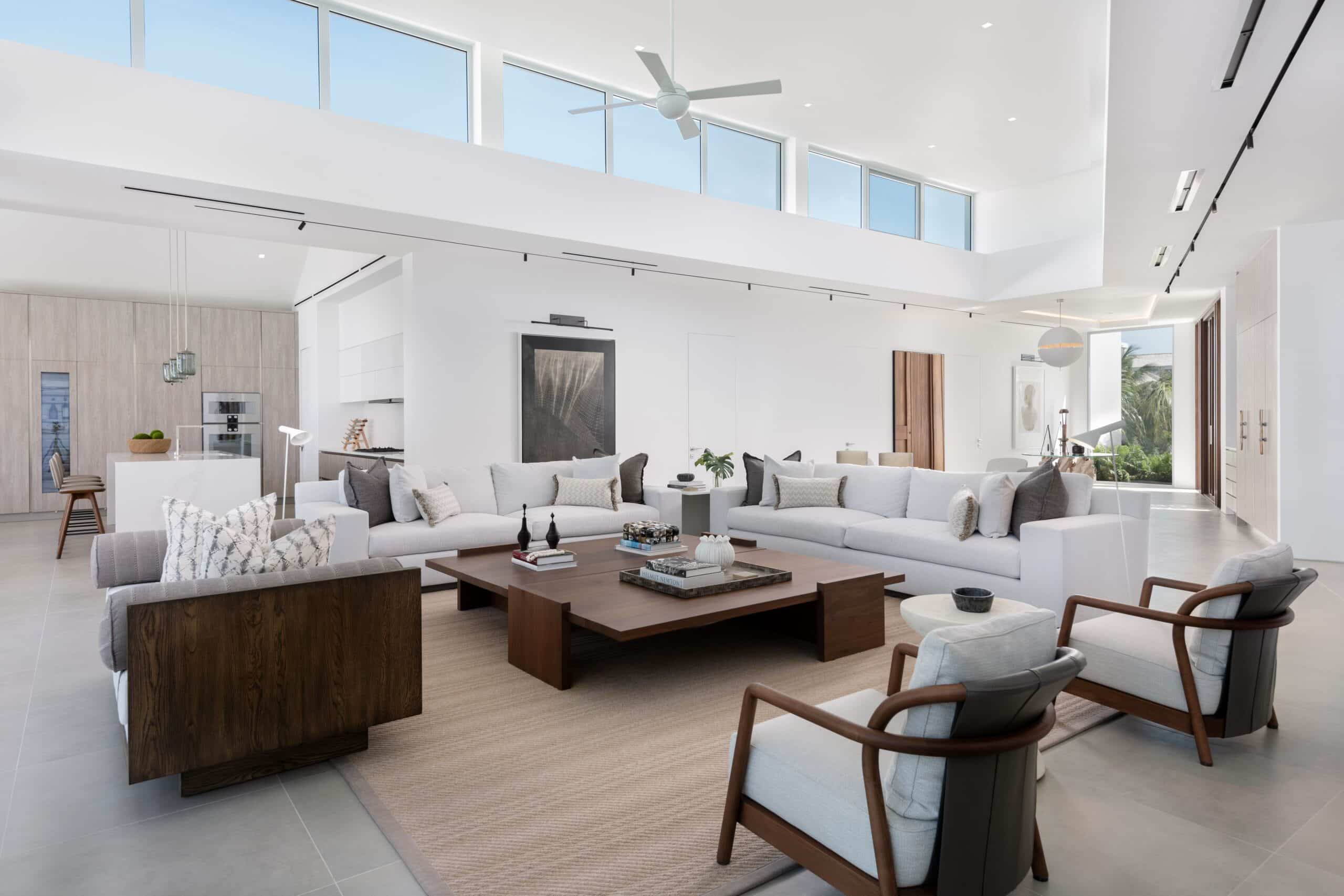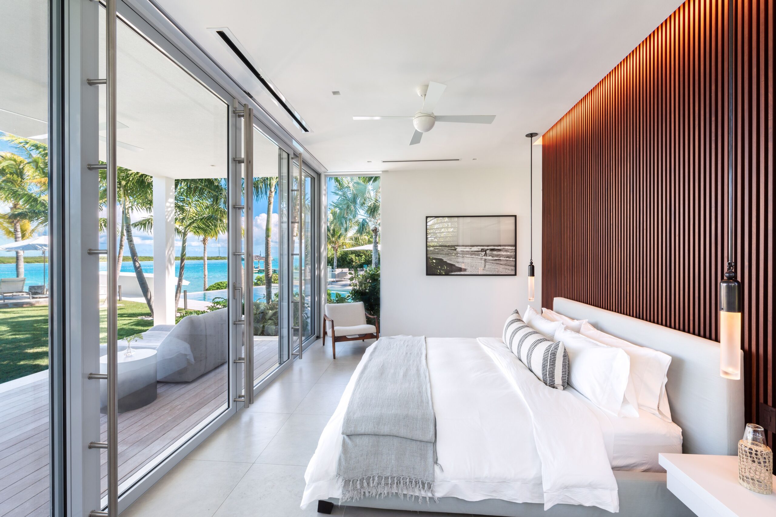 The open flow between the living spaces and the surrounding gardens, pool, and waterfront creates a sense of effortless continuity — the kind of place where the boundary between indoors and out dissolves before you have fully unpacked.