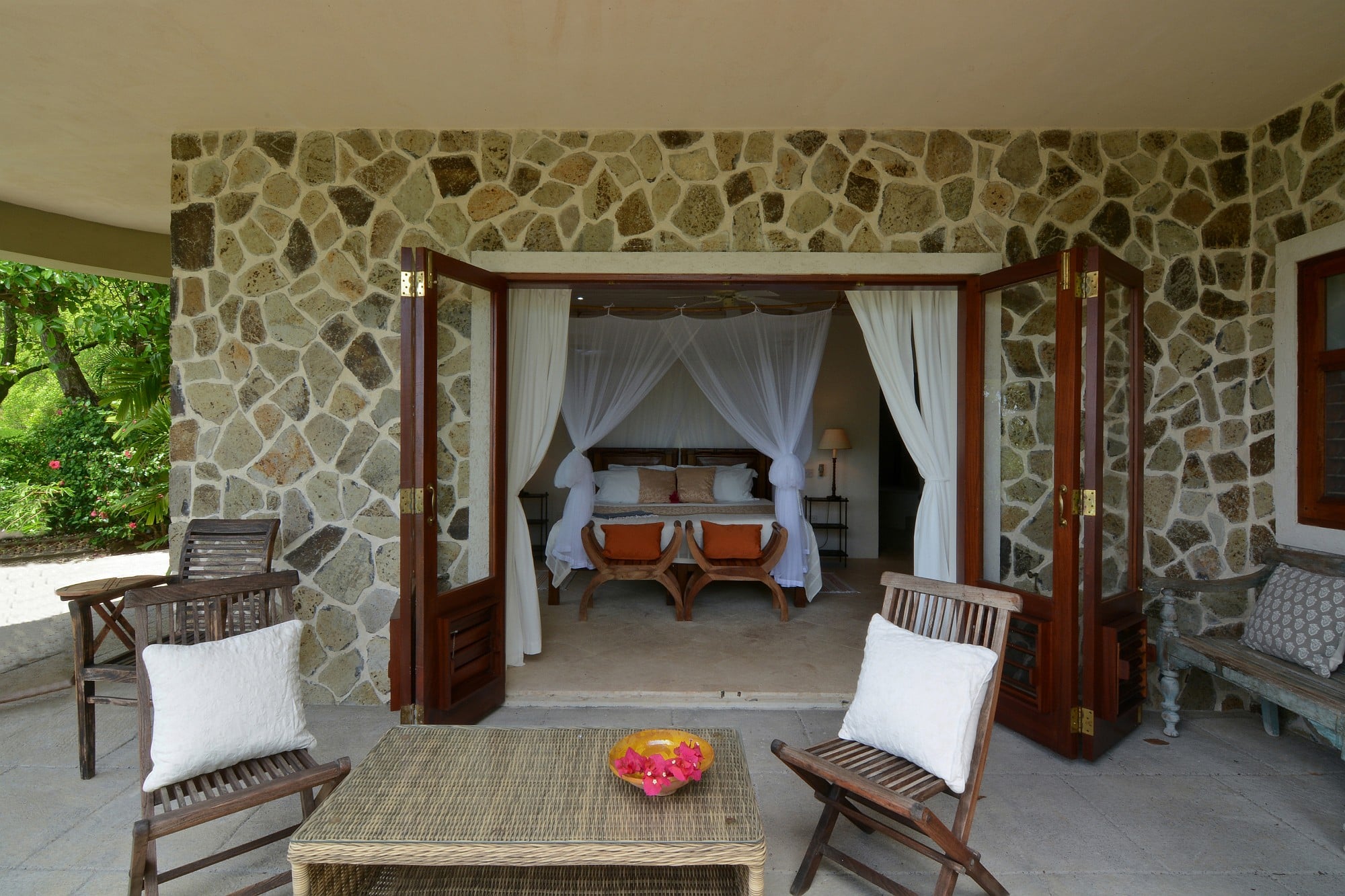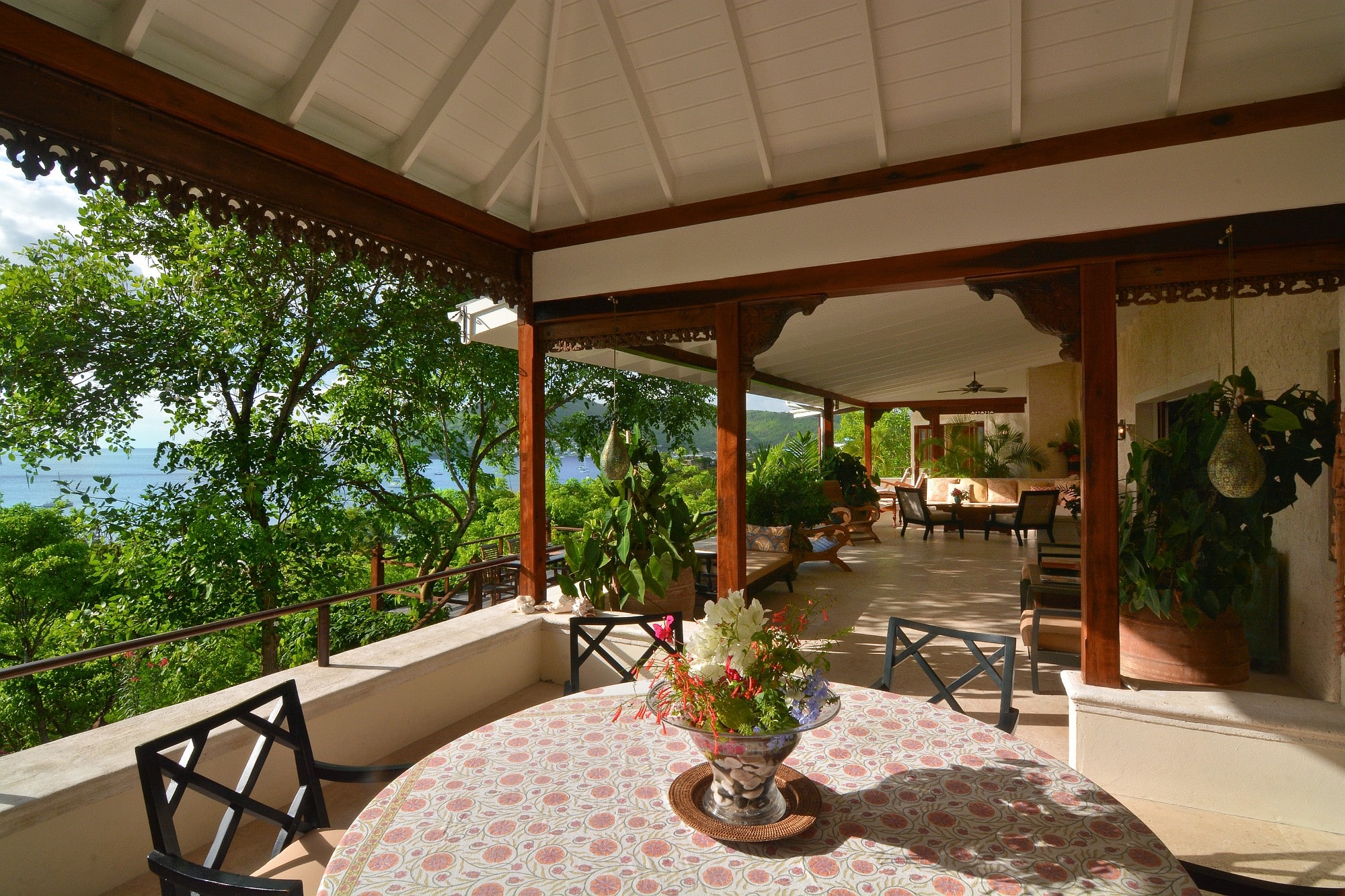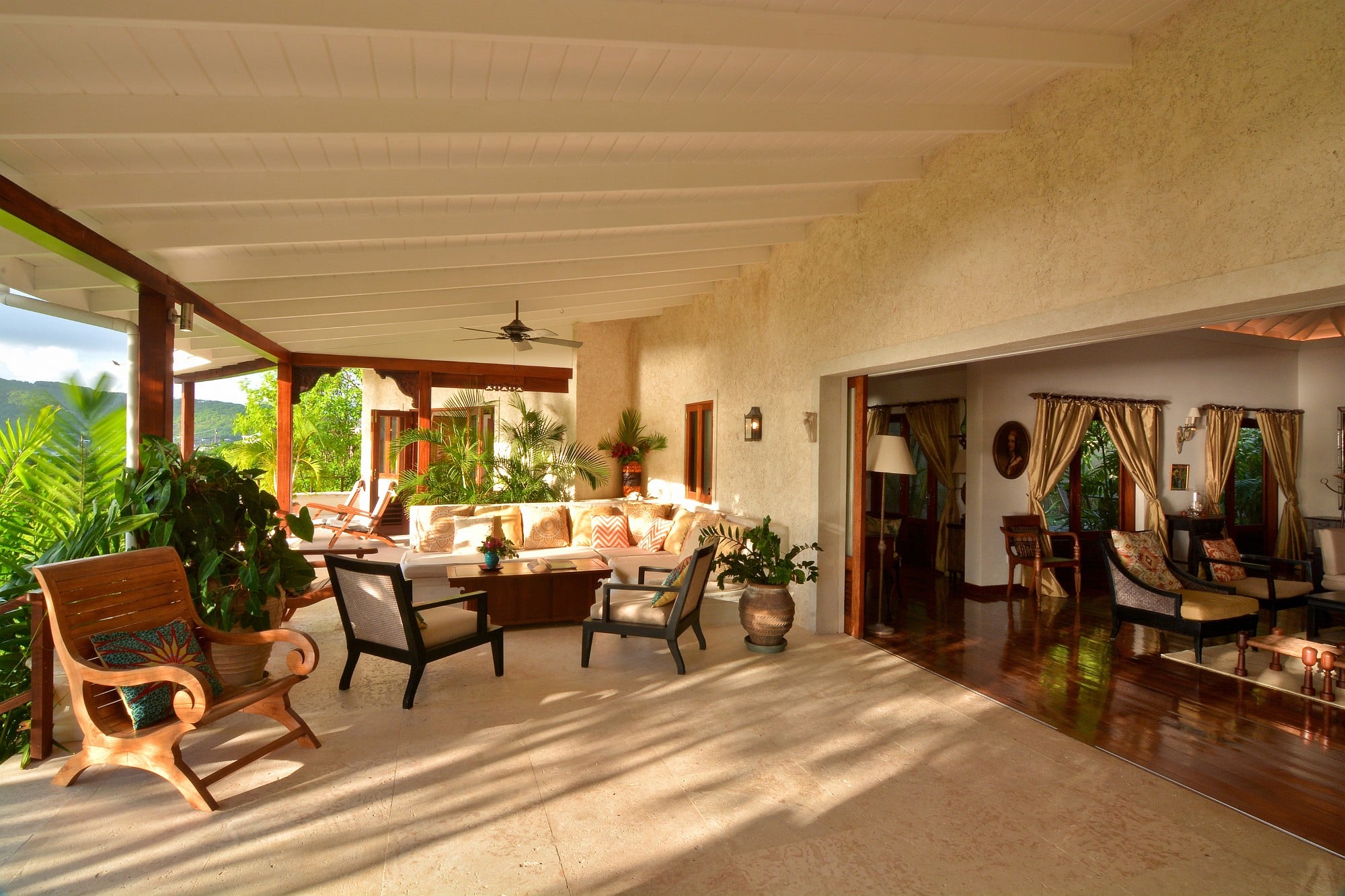 Cassava was designed by a renowned architect with a distinguished body of work in Mustique. The villa has been conceived to embrace its setting, with expansive terraces, large sliding doors, and a layout that flows effortlessly between interior and exterior spaces. The main living level opens onto a wide, ocean-facing terrace overlooking the pool and gardens below—an ideal setting for entertaining or quiet relaxation.
