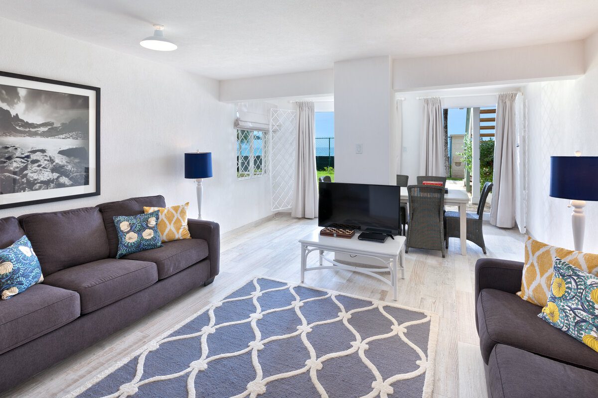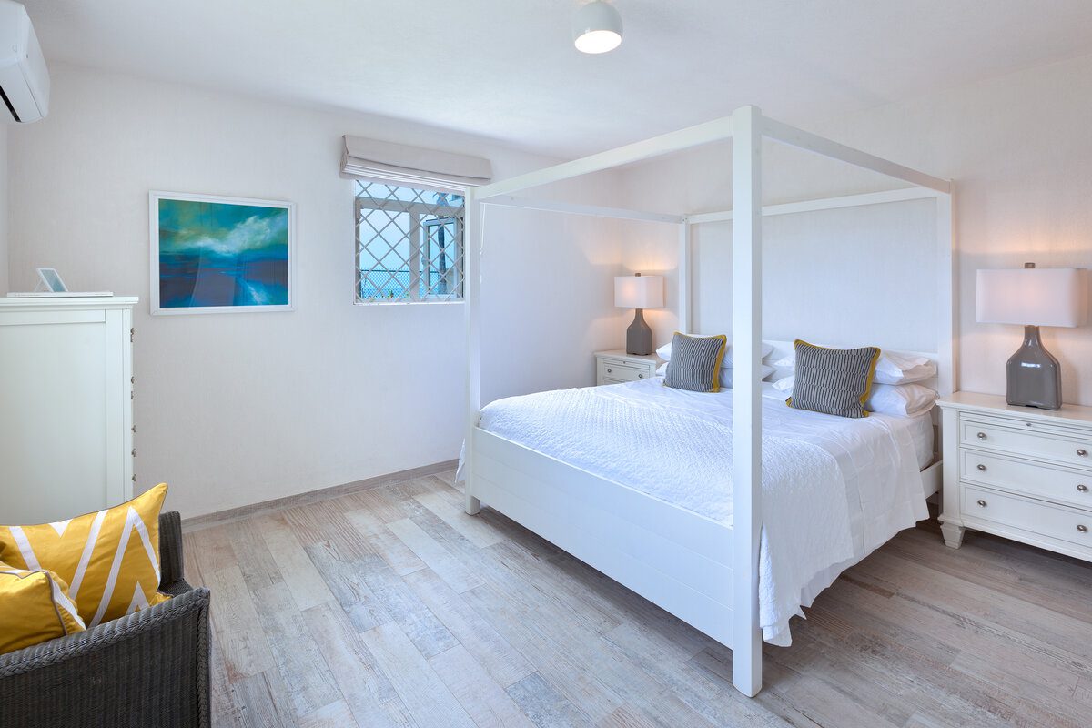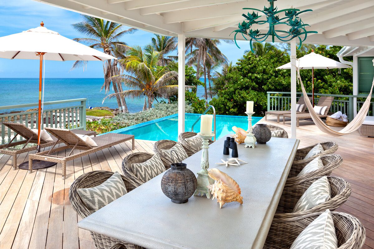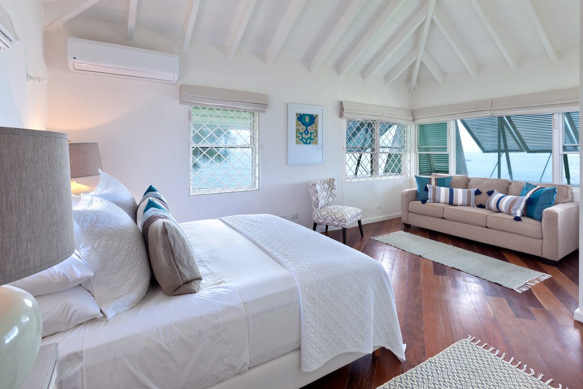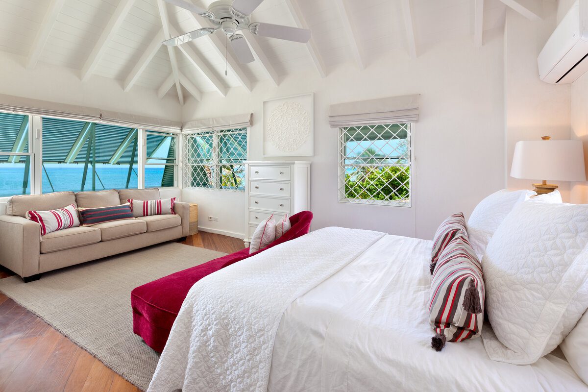 This stunning oceanfront villa overlooks the Atlantic Ocean on the Southern tip of Barbados and features a breezy open-plan design, retro beachy vibe, and views. The home has been recently refurbished with light wooden floors, eye-catching chandeliers, and an upgraded state-of-the-art kitchen.