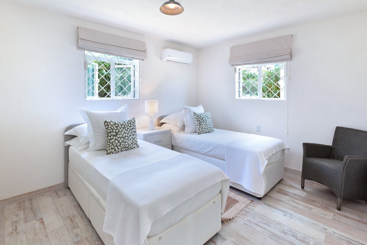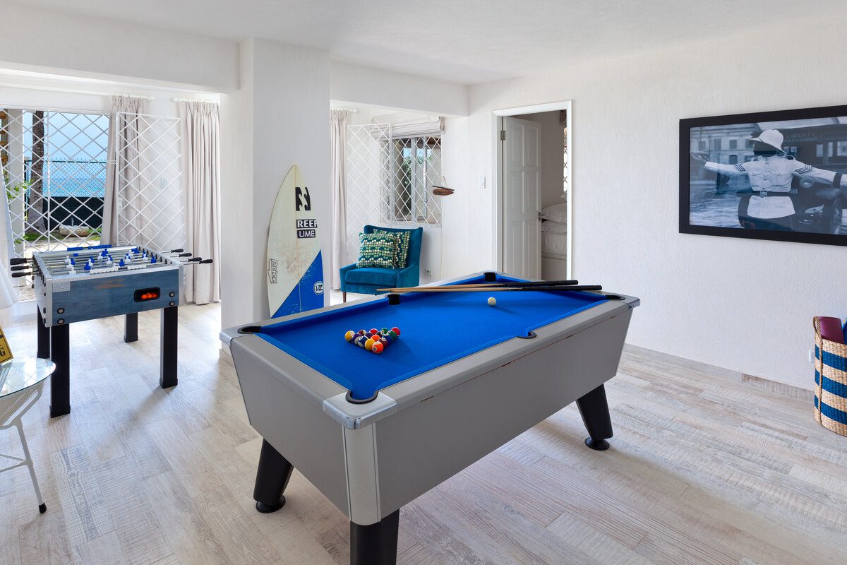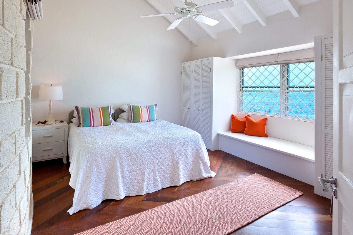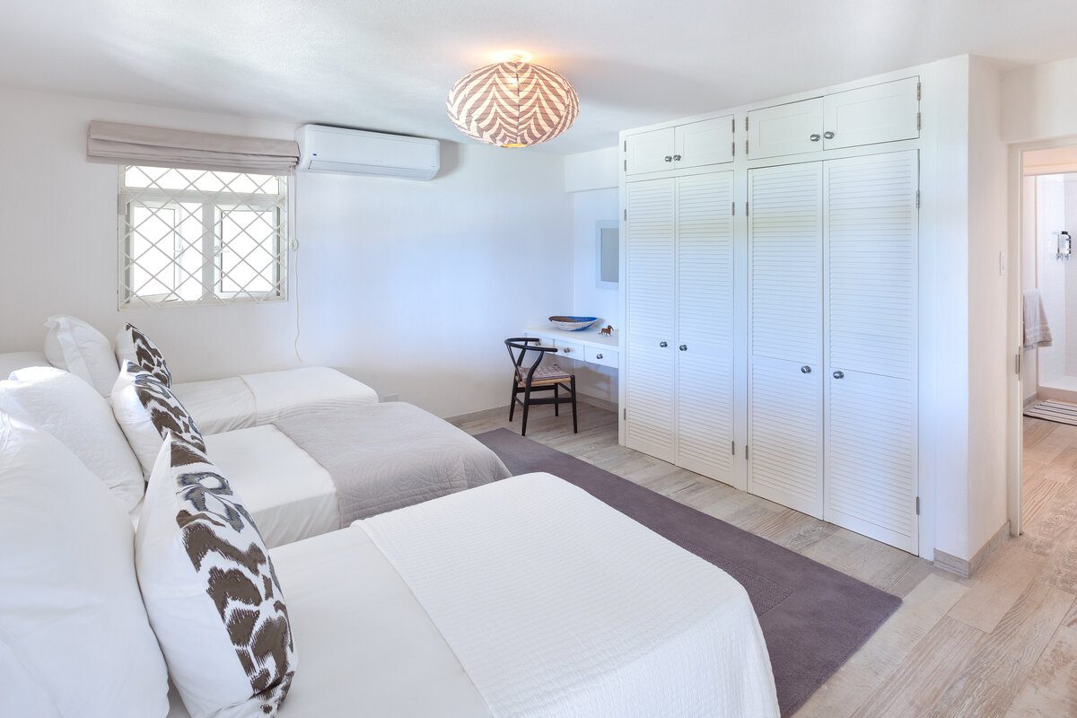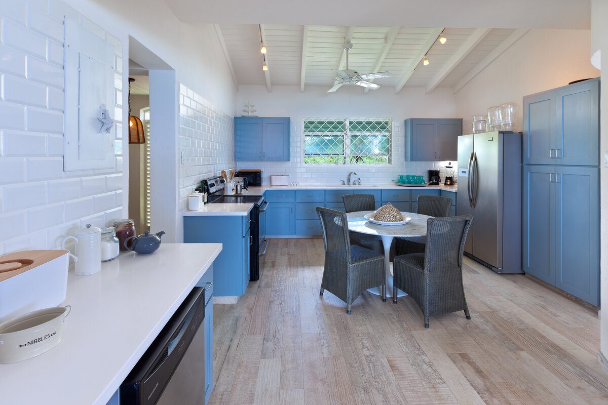 This stunning oceanfront villa overlooks the Atlantic Ocean on the Southern tip of Barbados and features a breezy open-plan design, retro beachy vibe, and views. The home has been recently refurbished with light wooden floors, eye-catching chandeliers, and an upgraded state-of-the-art kitchen.
