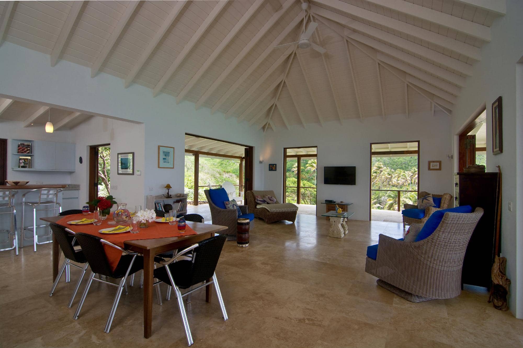 Jamdown is an exquisite waterfront villa that epitomises tropical luxury and relaxed island living. Newly constructed, its prominent position overlooks the pristine sandy shores of Crescent Beach. The villa boasts panoramic 360° views of the ocean and surrounding islands, ensuring breathtaking vistas from every angle. It offers modern amenities such as WiFi and ceiling fans for utmost comfort.
