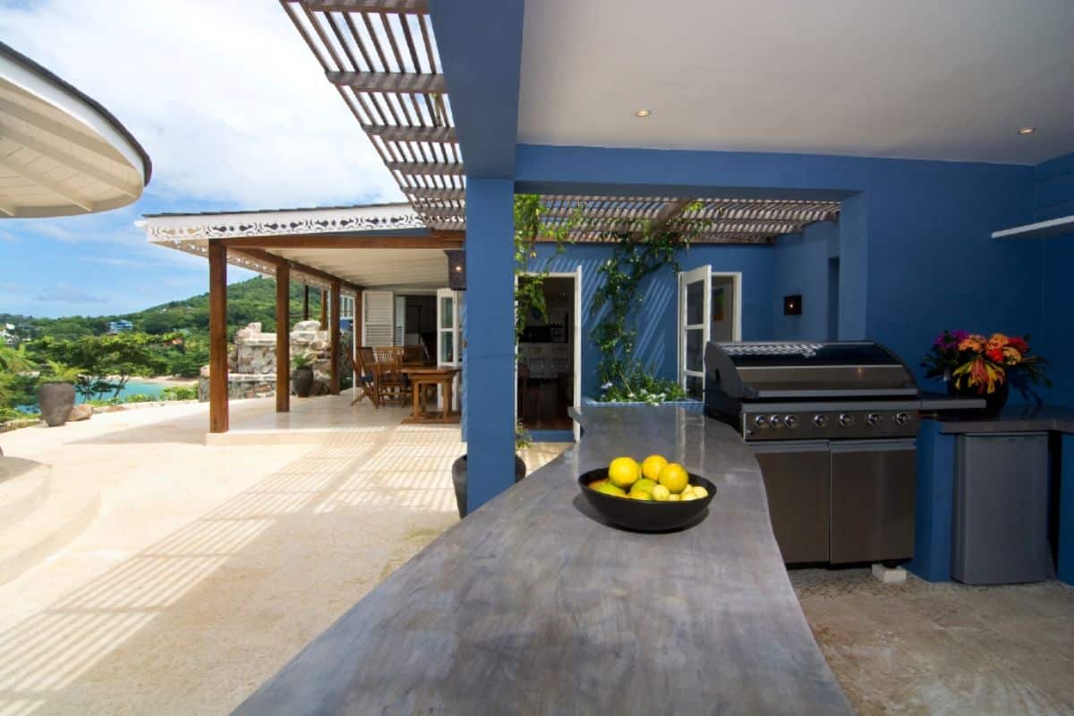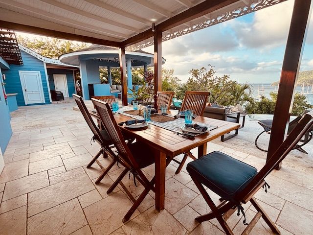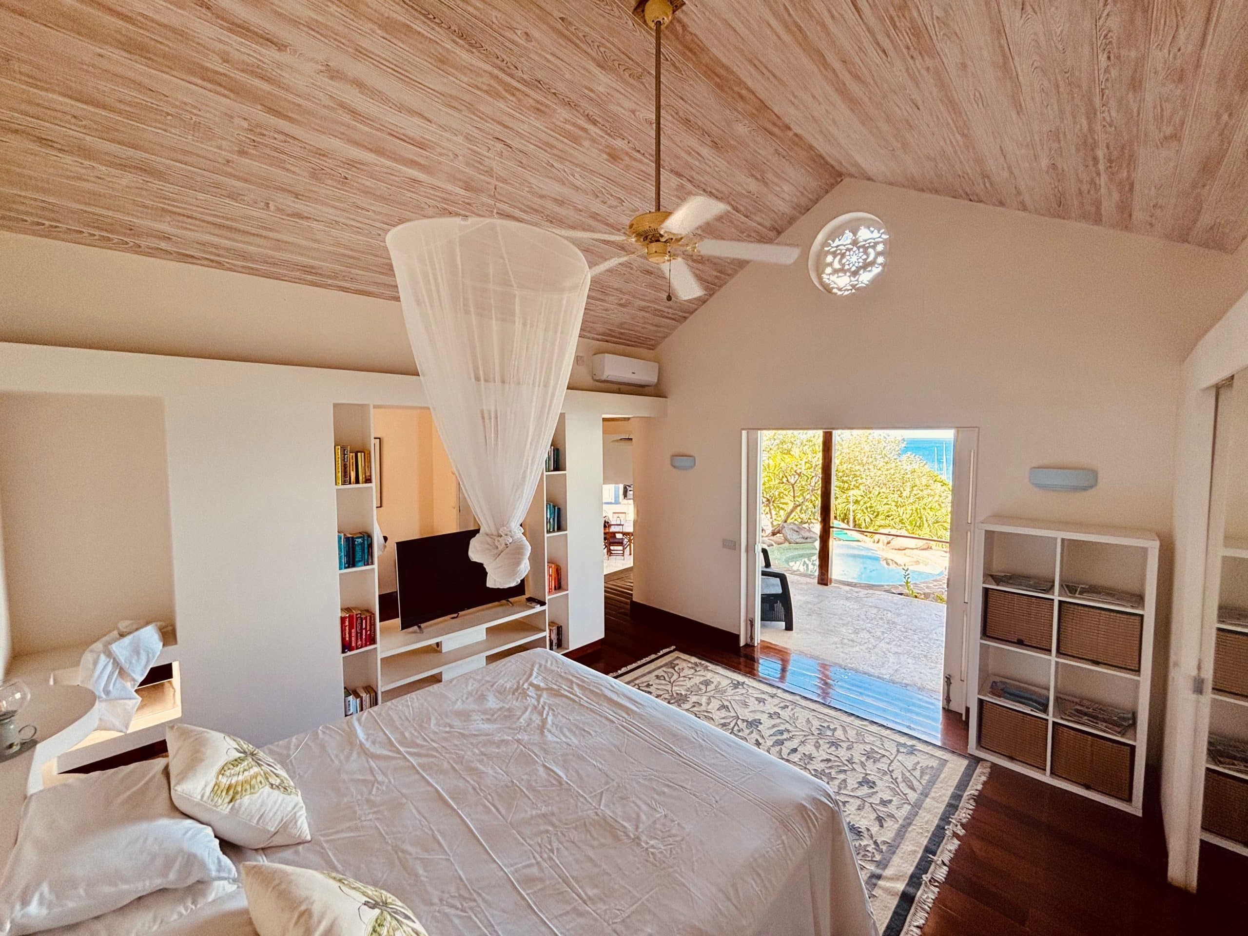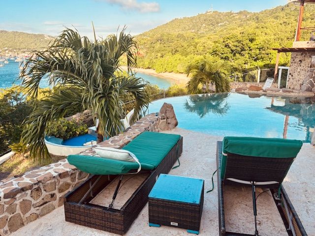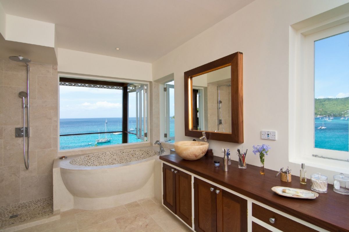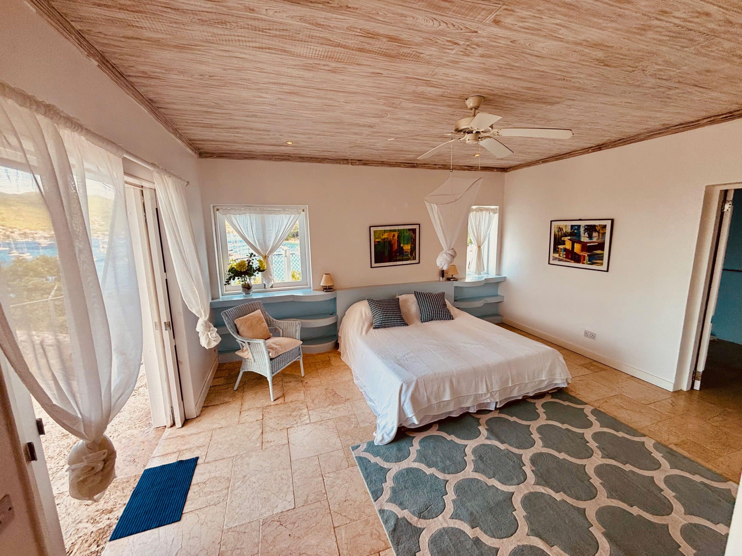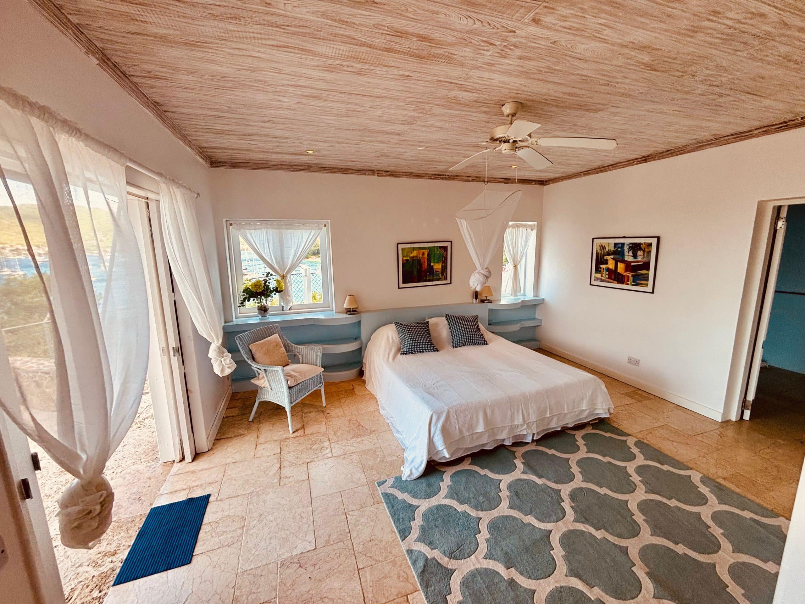 The villa is ideally situated on a stunning cliff-top plot, providing breathtaking views of the picturesque Princess Margaret Beach and Admiralty Bay. Guests can relax in the private infinity pool and enjoy watching boats come and go in the harbour. King House is located just a two-minute walk from the two finest beaches on the island, Lower Bay and Princess Margaret Beach. These beaches offer several beach bars, restaurants, and stalls selling fruits, vegetables, souvenirs, and local beverages.