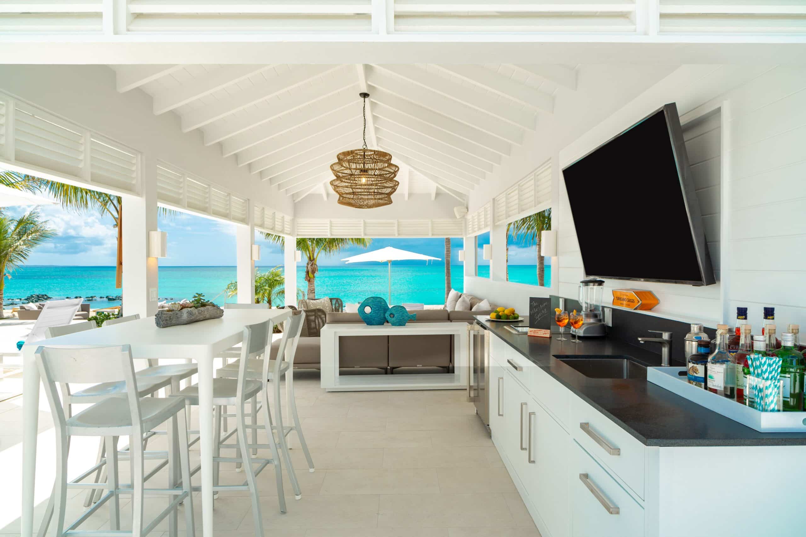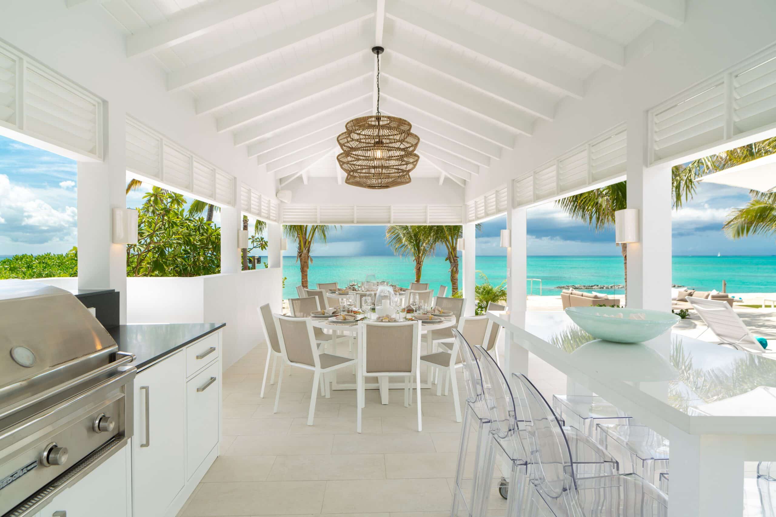 Milestone occupies a commanding position just steps from Grace Bay Beach, its elevated aspect delivering panoramic ocean views that stretch uninterrupted to the horizon. This is a property conceived at a different scale to the typical villa — part private residence, part thoughtfully designed resort — where almost an acre of manicured grounds, two oceanfront pavilions, a 50-foot heated pool, a spa room, and a regulation pickleball court sit alongside the kind of attentive, personal service that makes a stay here feel genuinely effortless. Whether your days are spent on the water, at the pool, or doing very little at all, Milestone has been designed to accommodate every version of a perfect Turks and Caicos week.