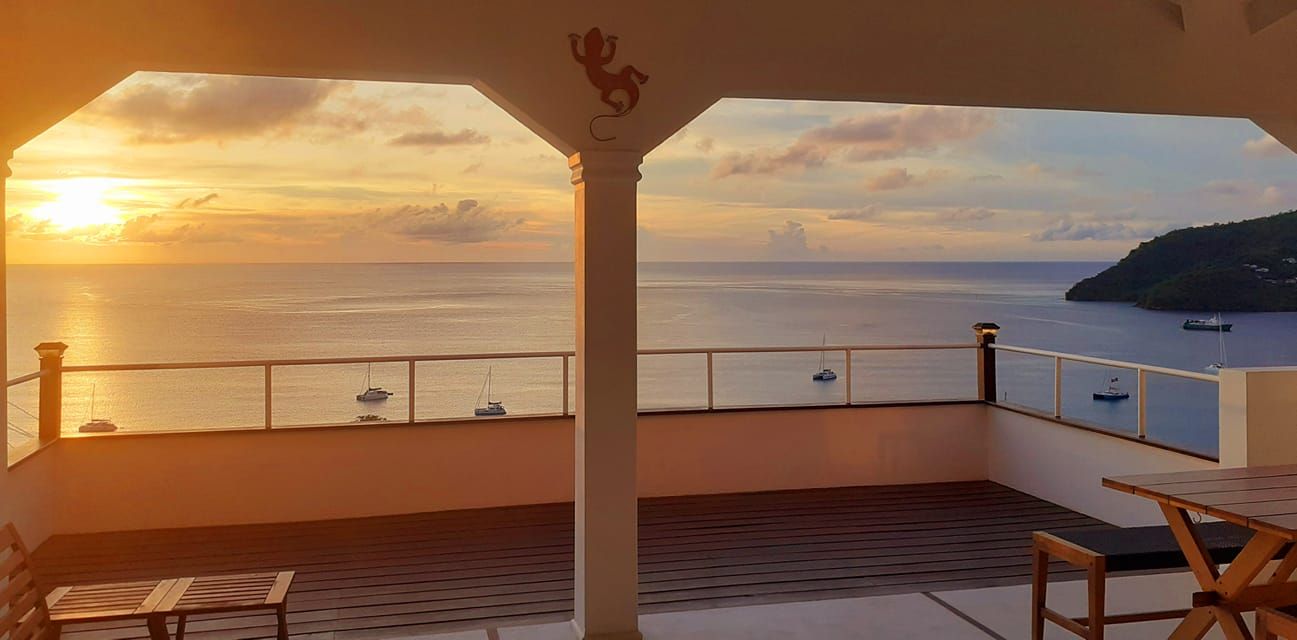 The Lookout – Ocean Deck is a two-bedroom, two-bathroom apartment, newly refurbished & remodelled, with a breathtaking 180-degree panoramic view of the Caribbean Sea, Lower Bay beach, stunning Admiralty Bay and the surrounding pristine natural forest.