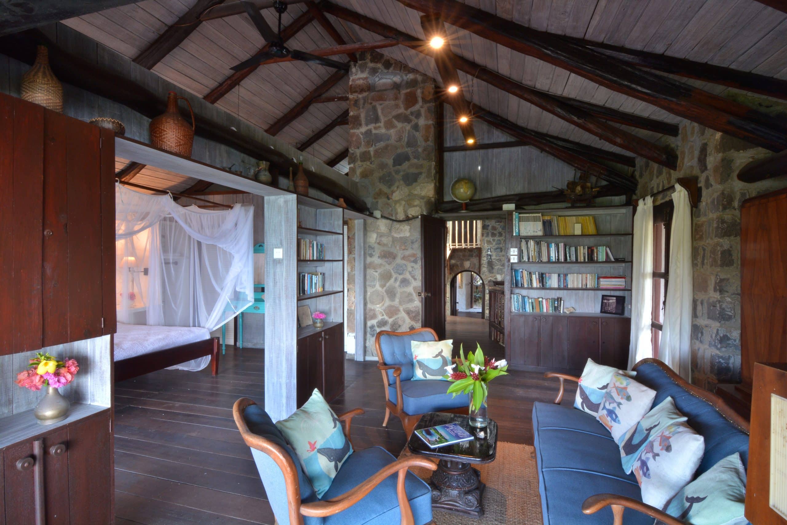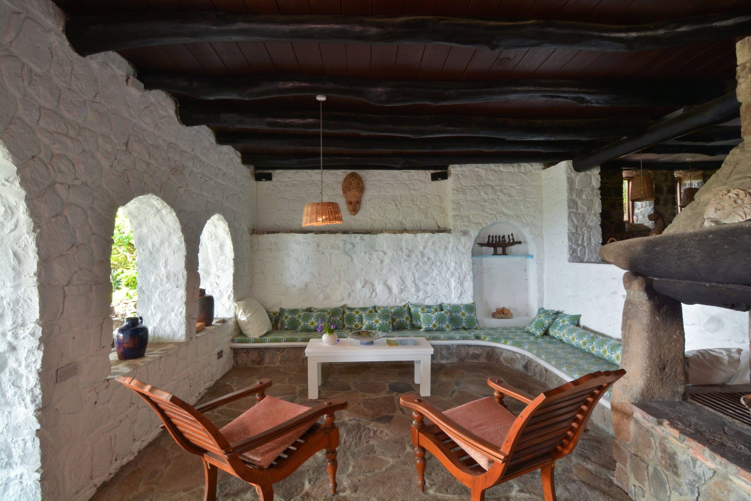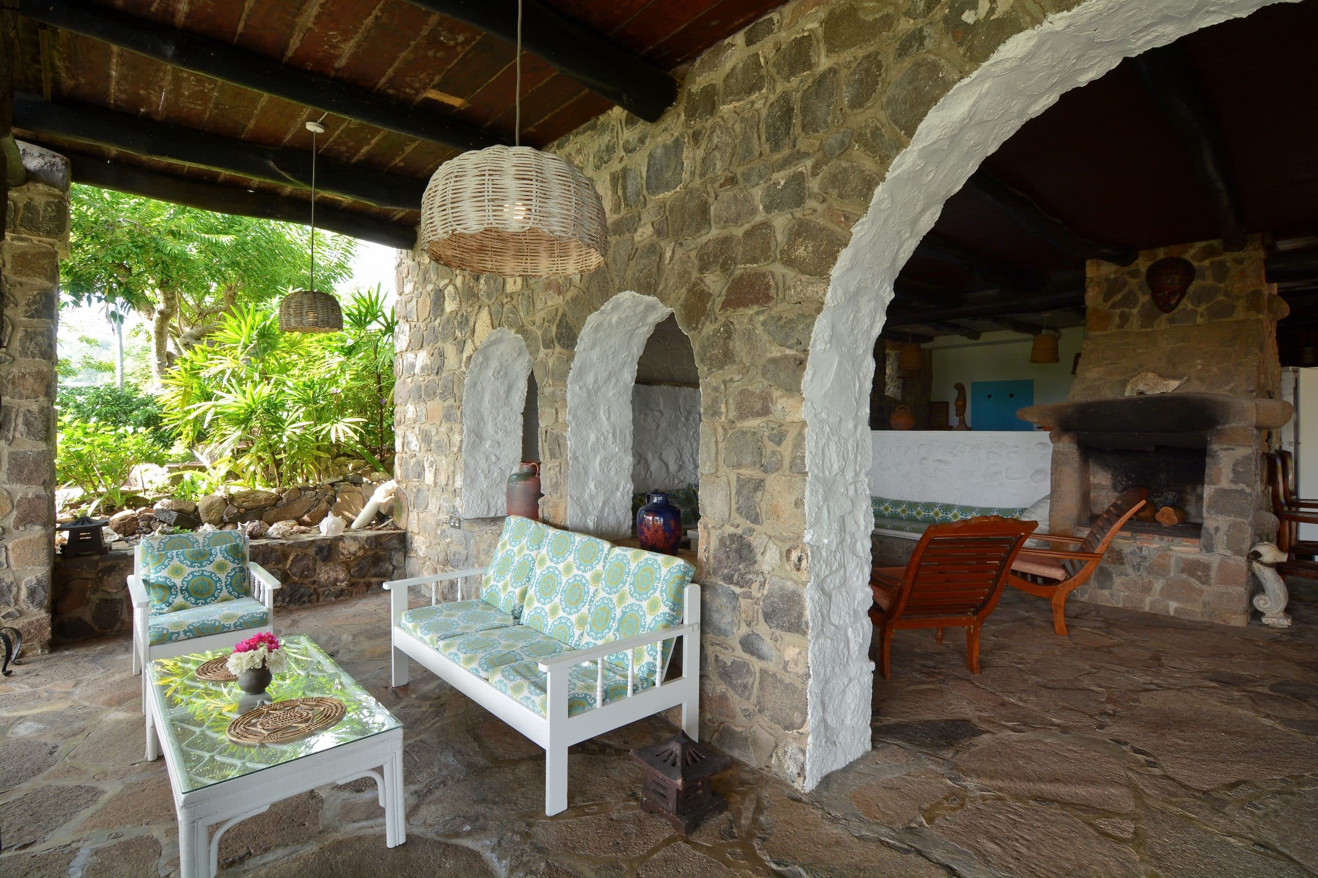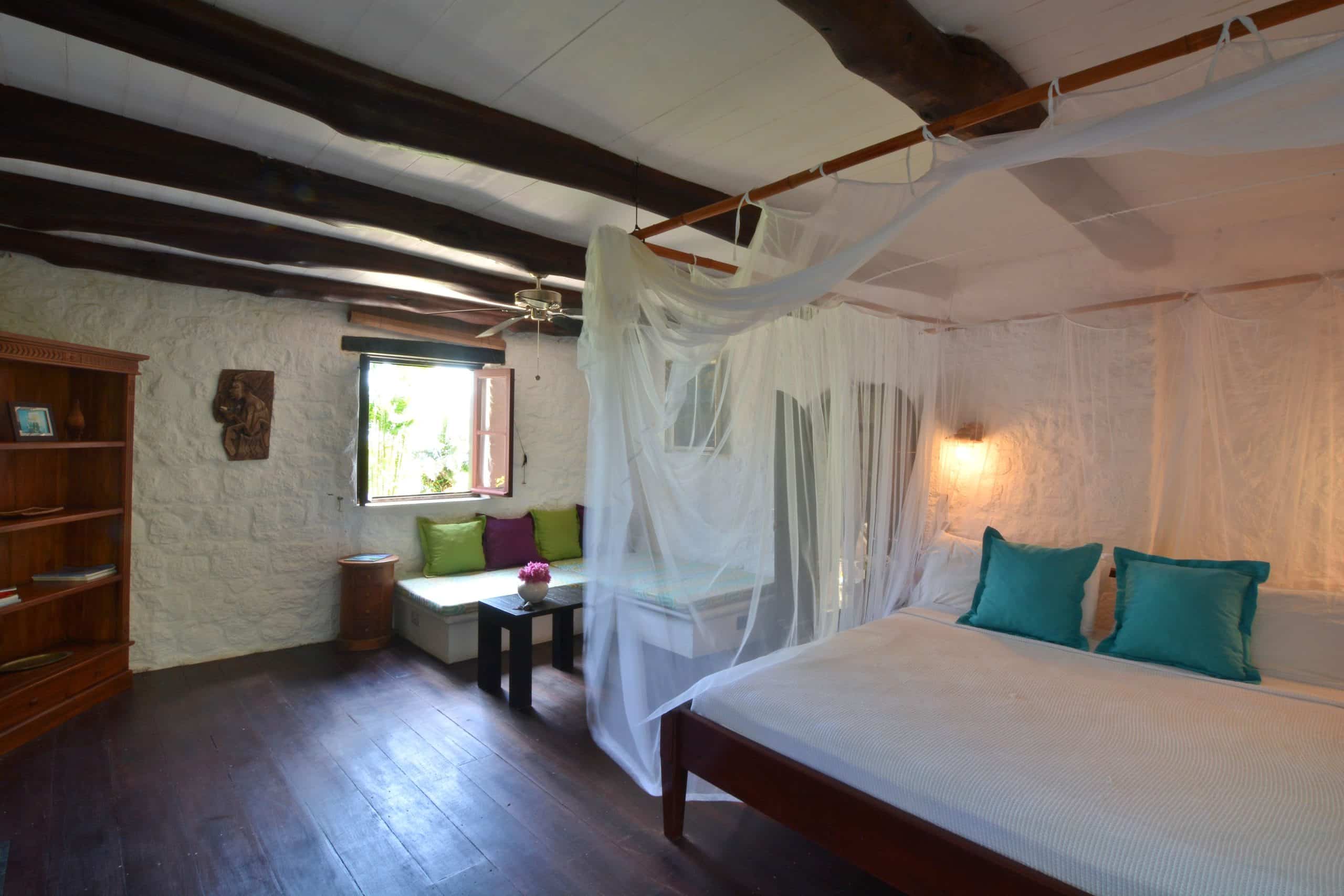 Both villas on the Old Fort Estate boast open-air designs, embracing the natural surroundings and eliminating the carbon footprint with the use of solar panels. Three of the bedrooms in the Old Fort are air-conditioned, the remaining bedrooms have natural ventilation and ceiling fans. Experience the ultimate blend of history and eco-friendliness at this stunning carbon-neutral property.