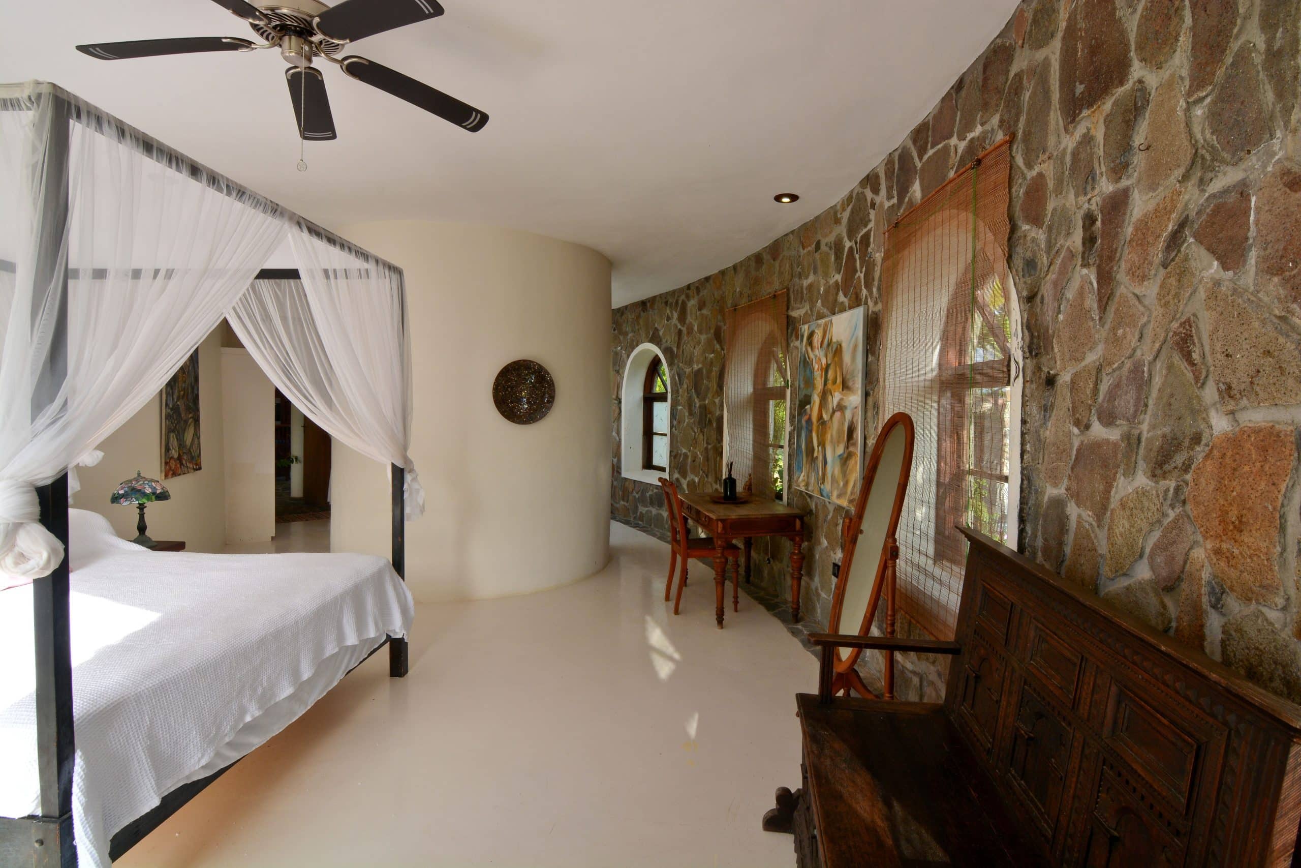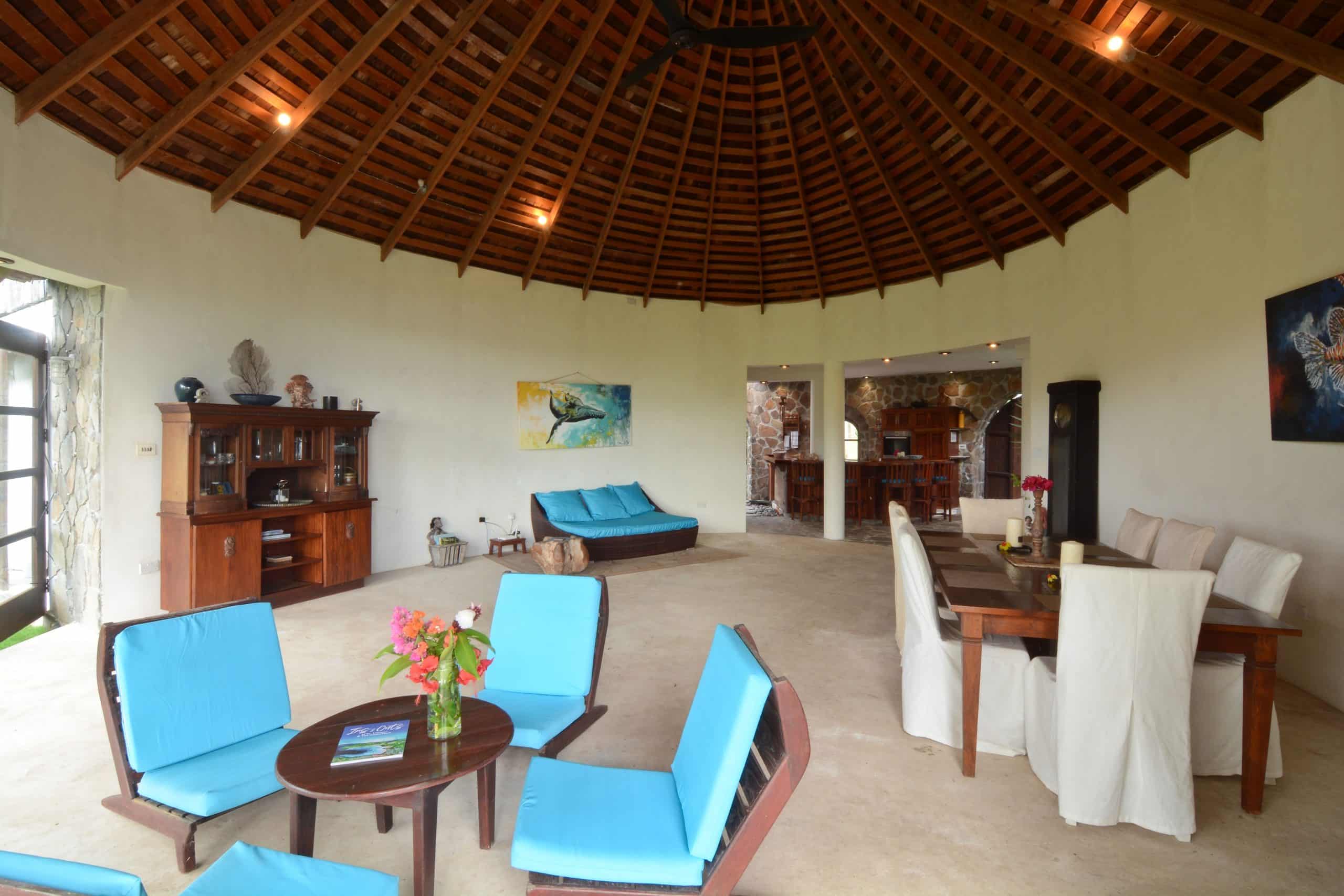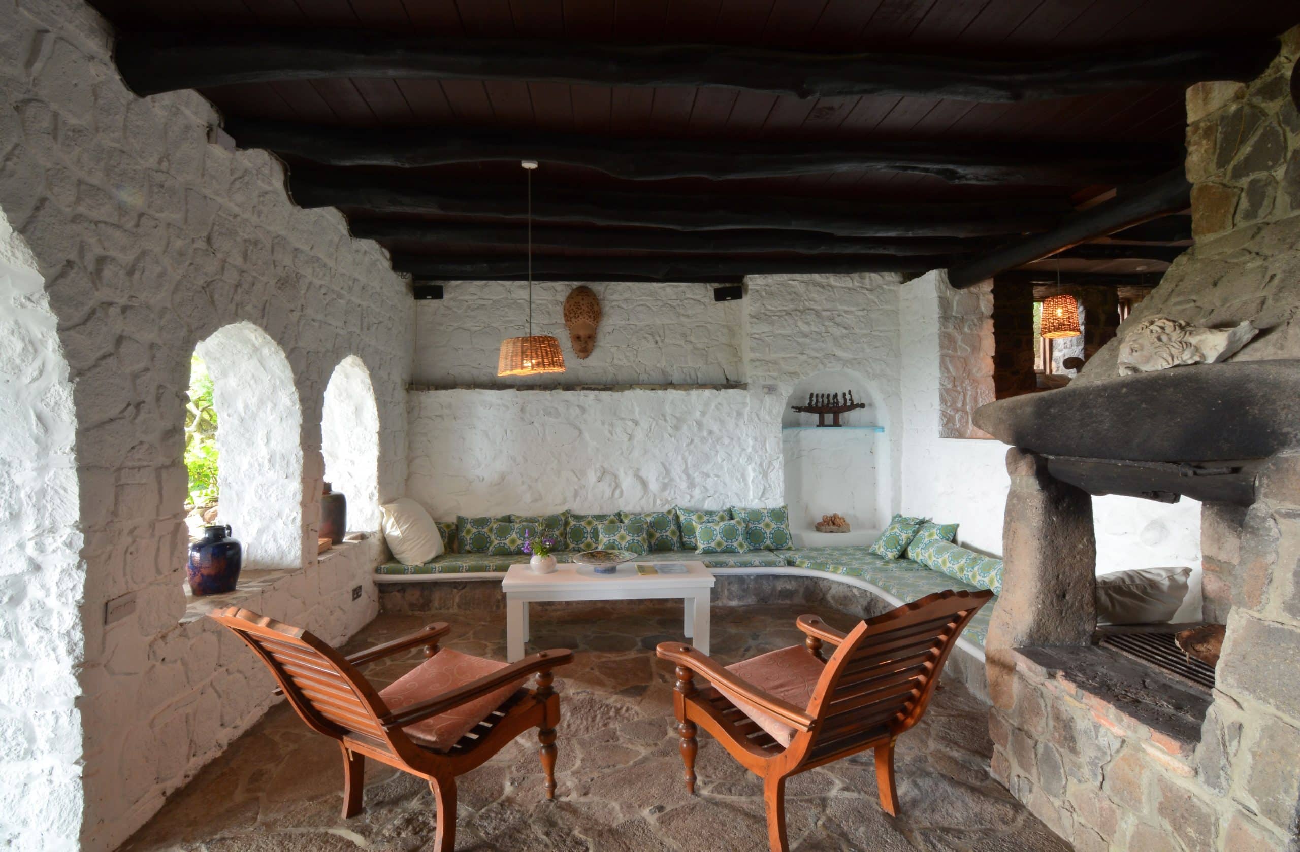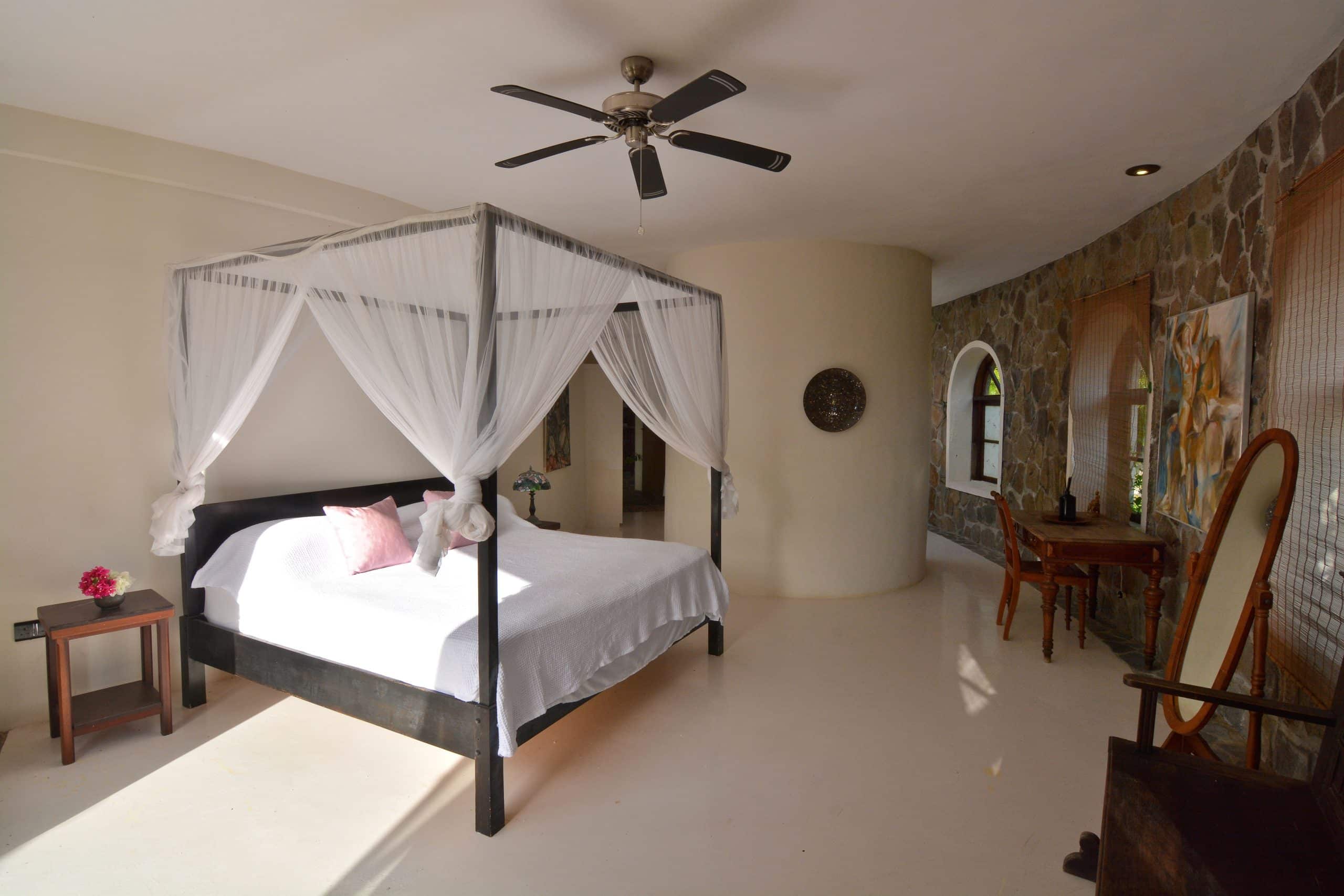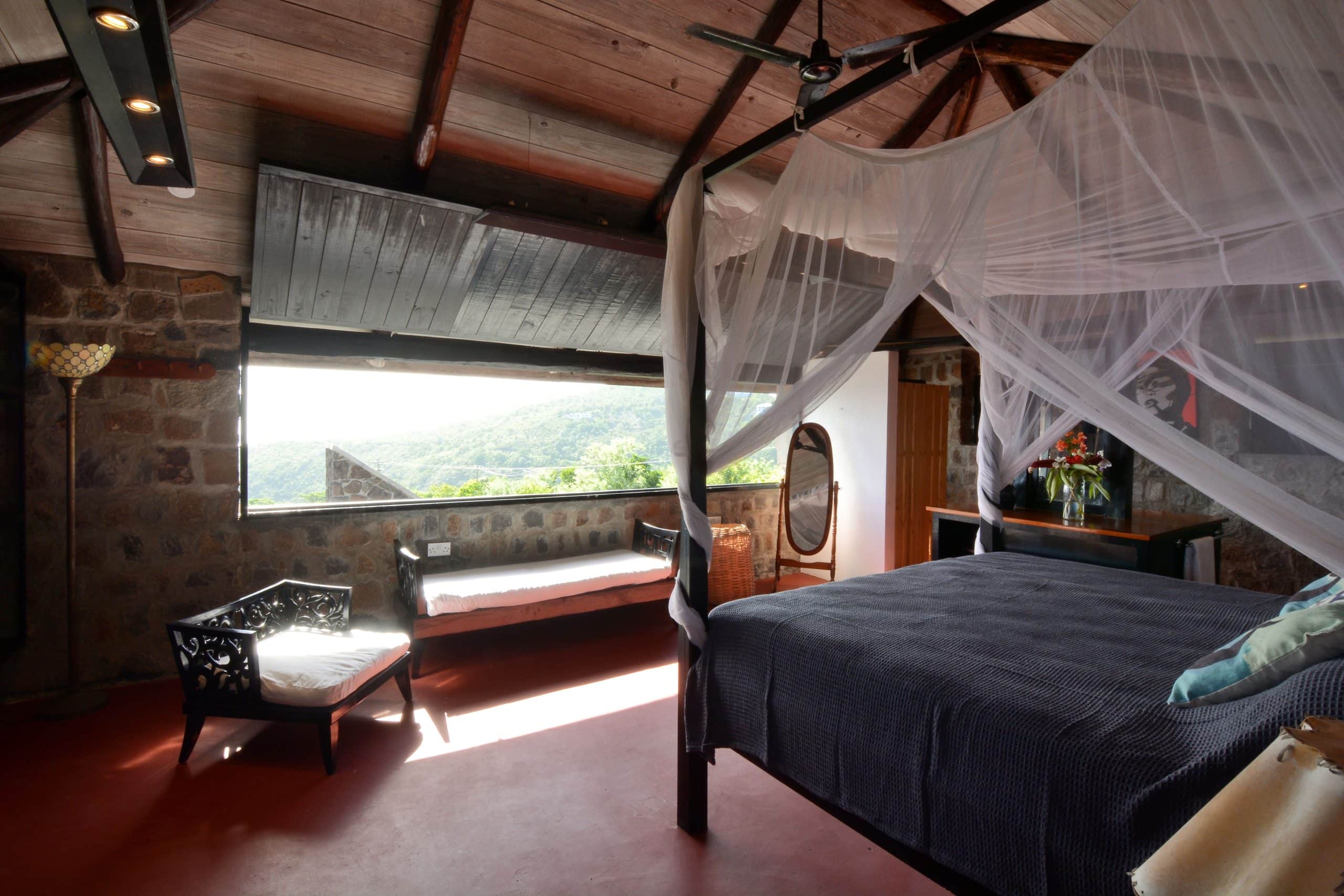 Both villas on the Old Fort Estate boast open-air designs, embracing the natural surroundings and eliminating the carbon footprint with the use of solar panels. Three of the bedrooms in the Old Fort are air-conditioned, the remaining bedrooms have natural ventilation and ceiling fans. Experience the ultimate blend of history and eco-friendliness at this stunning carbon-neutral property.