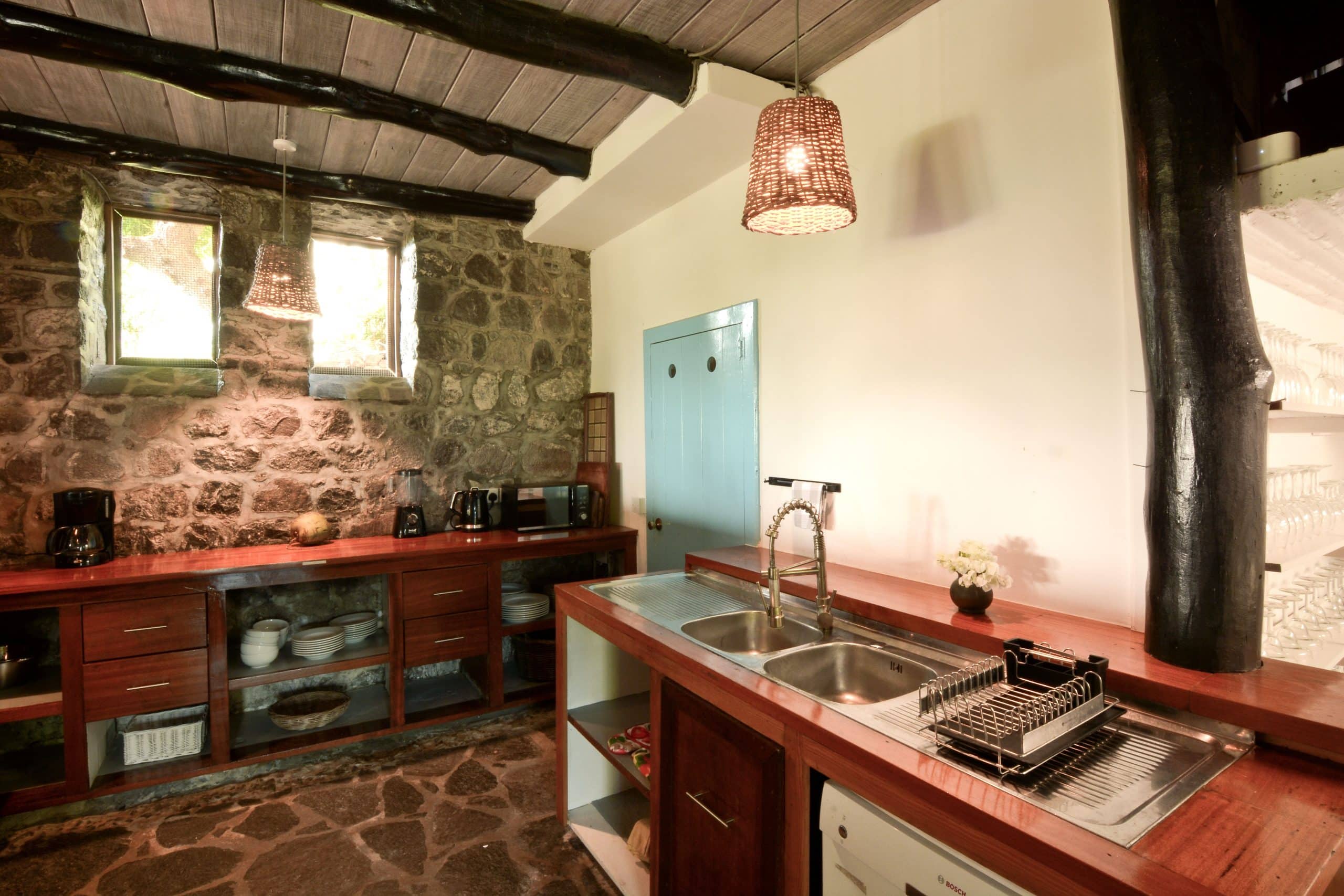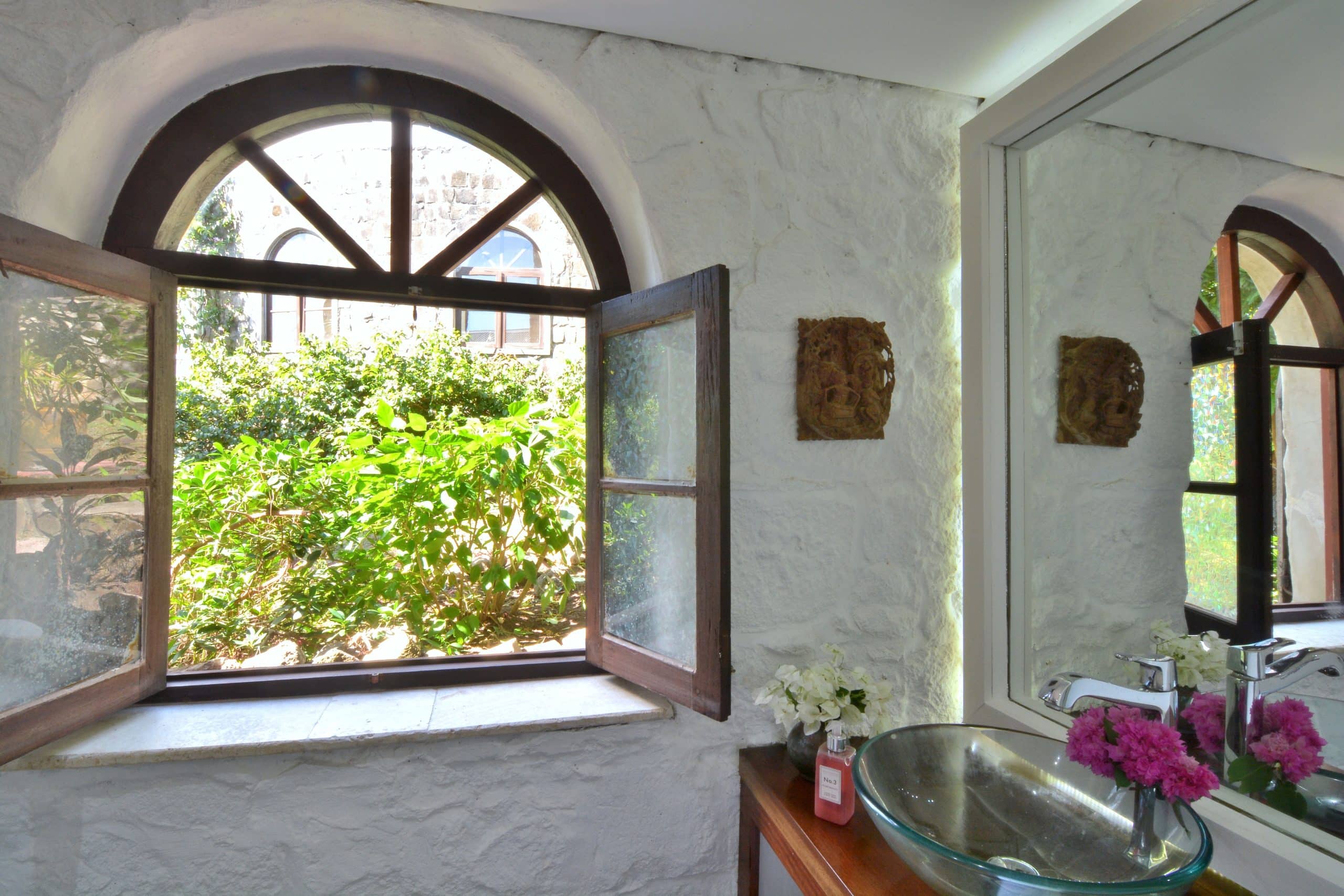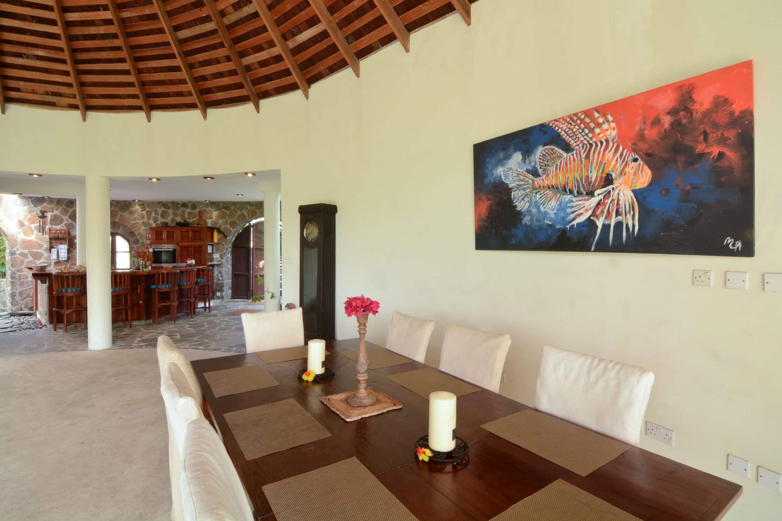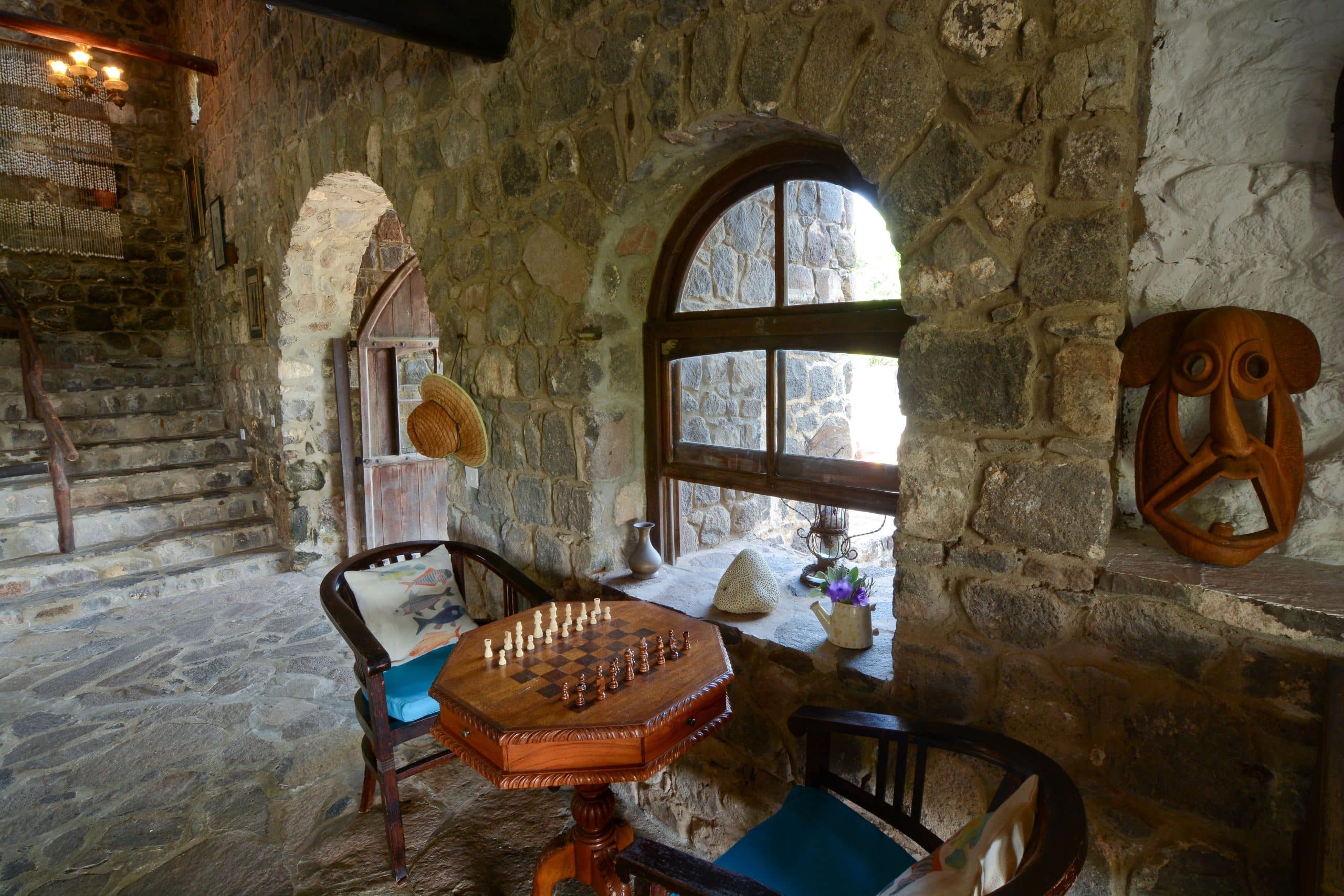 Both villas on the Old Fort Estate boast open-air designs, embracing the natural surroundings and eliminating the carbon footprint with the use of solar panels. Three of the bedrooms in the Old Fort are air-conditioned, the remaining bedrooms have natural ventilation and ceiling fans. Experience the ultimate blend of history and eco-friendliness at this stunning carbon-neutral property.