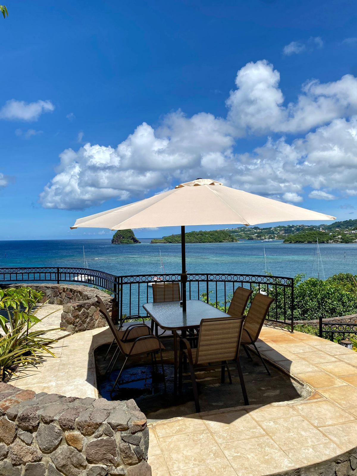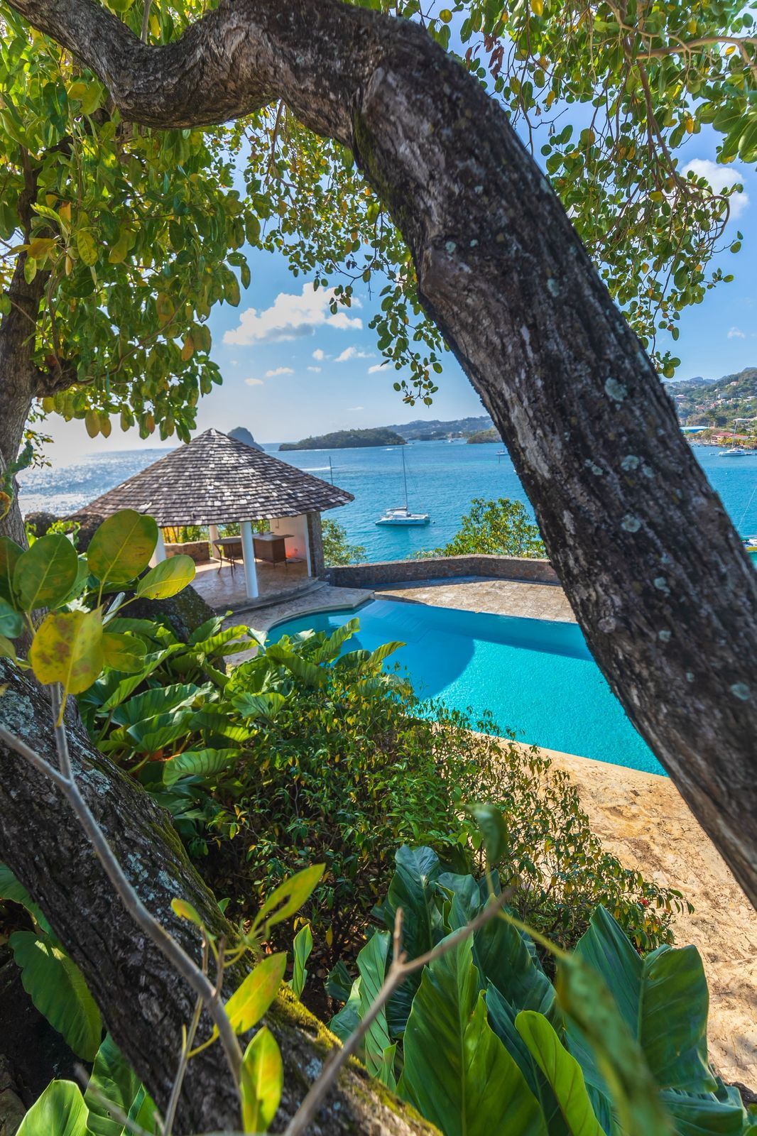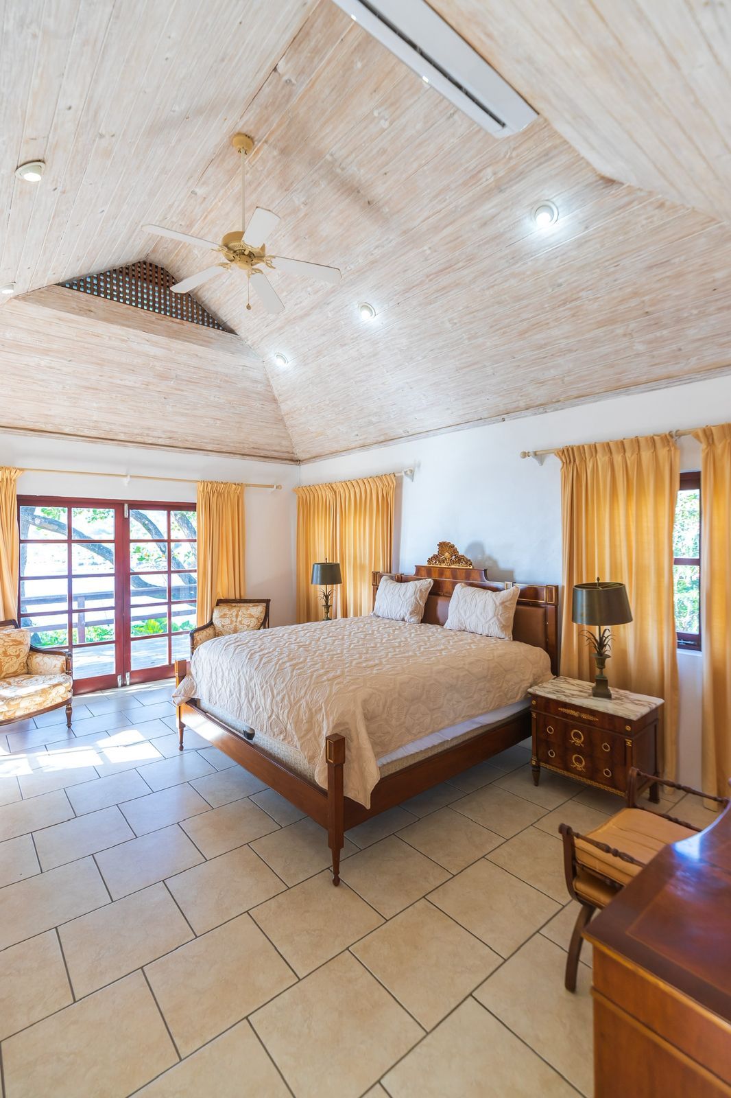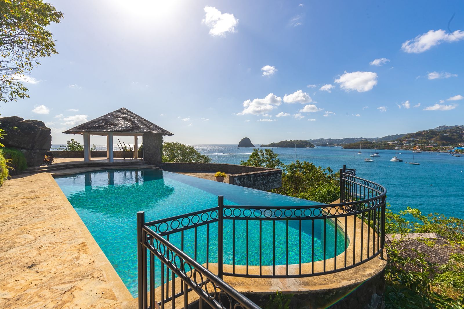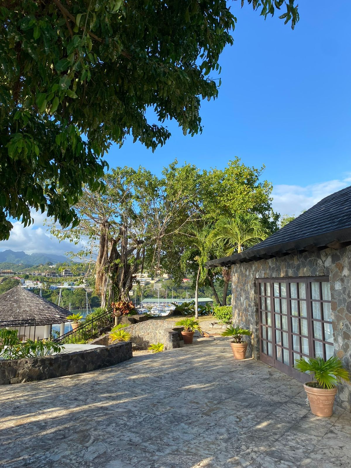 The villa’s outdoor spaces are a real highlight, with three distinct terrace levels, each offering exceptional views across the harbour toward Blue Lagoon Marina, Young Island, and Fort Duvernette.